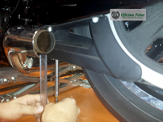 15- Neste momento, a motocicleta desce do elevador e se for equipada com cabo de acelerador, recebe um cuidado na lubrificação e ajuste do cabo.