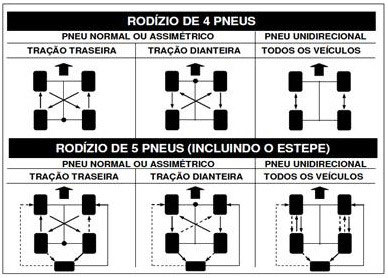Os esquemas a seguir indicam os rodízios recomendados de acordo com cada caso: