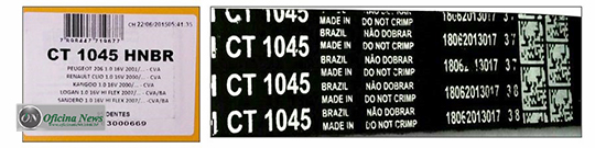 – Atenção à etiqueta da embalagem: na etiqueta da embalagem consta a data em que a correia foi embalada. Compare a data da embalagem com a data de fabricação da correia, conforme gravação na parte externa (costas) da correia dentada. Suspeite caso haja uma diferença muito grande entre elas. Já foram registados casos de até dois anos de diferença entre as datas.