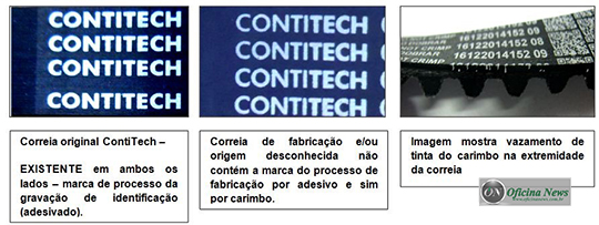 – Atenção a detalhes na parte interna das correias: as produzidas pela ContiTech têm aspecto áspero na parte externa (costas) da correia dentada, ao contrário do produto falsificado, que é liso.