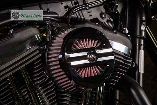 Já na parte lateral da moto, foram instaladas novas capas, tanto para o tanque de óleo, quanto para a bateria, ambas no estilo “cut back”, que transformam, instantaneamente, o perfil da motocicleta Sportster®. As capas nesse estilo conferem um design único com um visual “cortado”, tanto para a bateria quanto para o tanque de óleo.