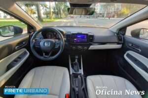 Combinado ao novo motor temos o câmbio CVT, de relação continuamente variável, que também apresenta evolução nesta versão do City. O conjunto faz a simulação de sete marchas, e tem como opção o os paddle shifts no volante.
