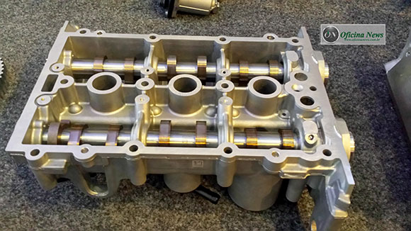 Cabeçote de alumínio com quatro válvulas por cilindro